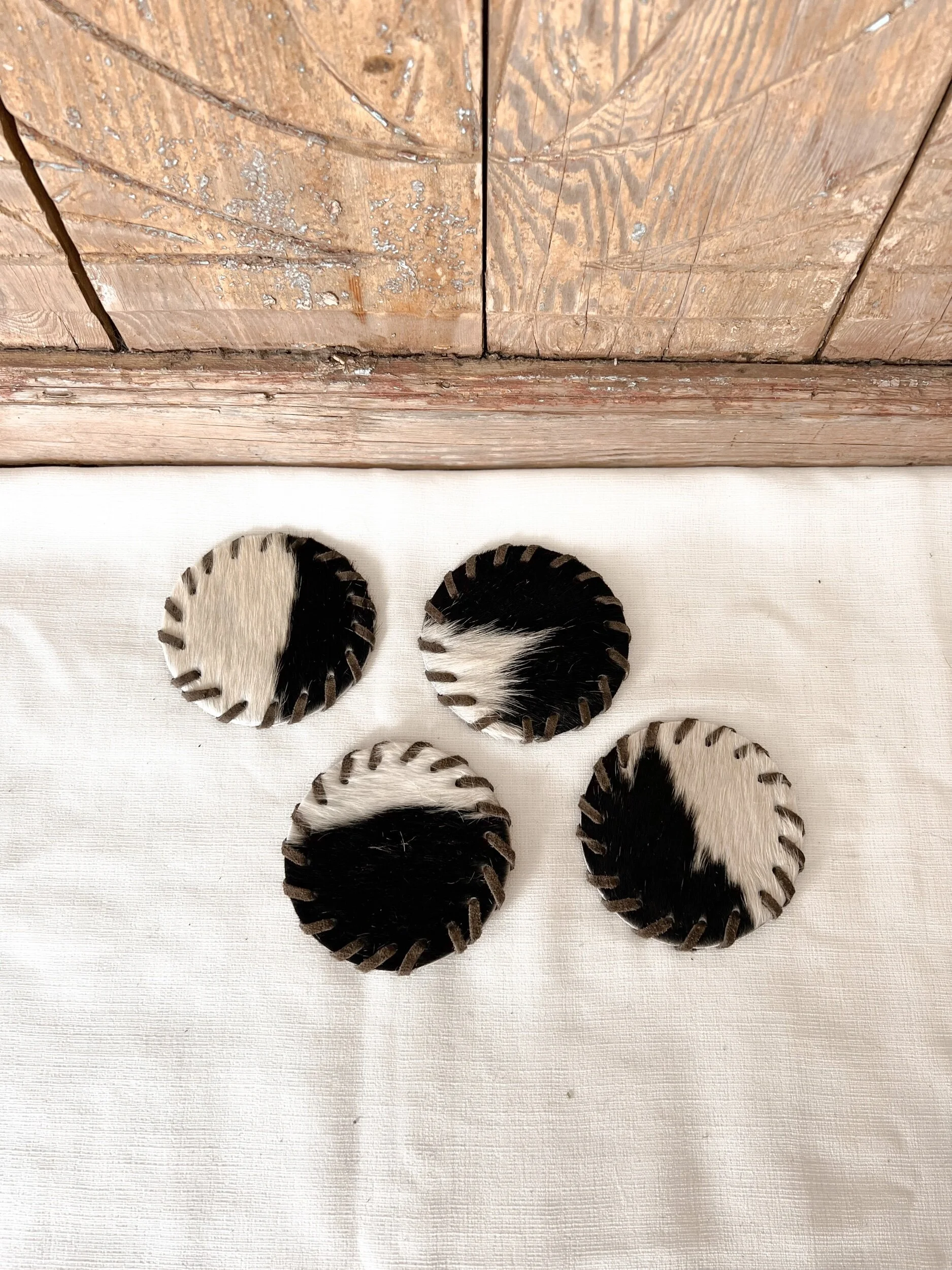 Inventory › Cowhide Coasters Image 1 of 1 Cowhide Coasters from $20.00 sold out Set of 4 Coasters Item: Select Item Brown/White Black/White Sold Out Added! Set of 4 Coasters