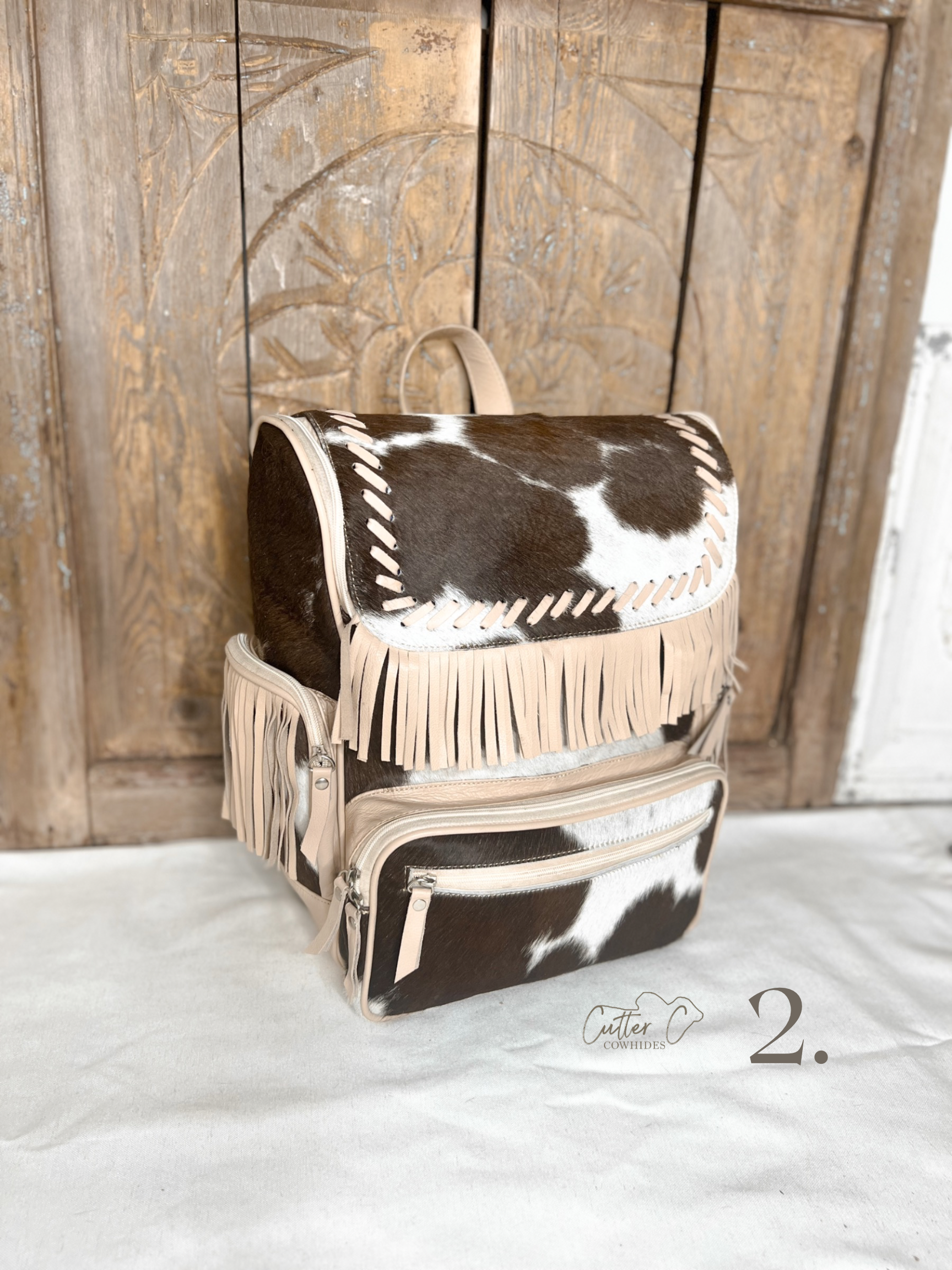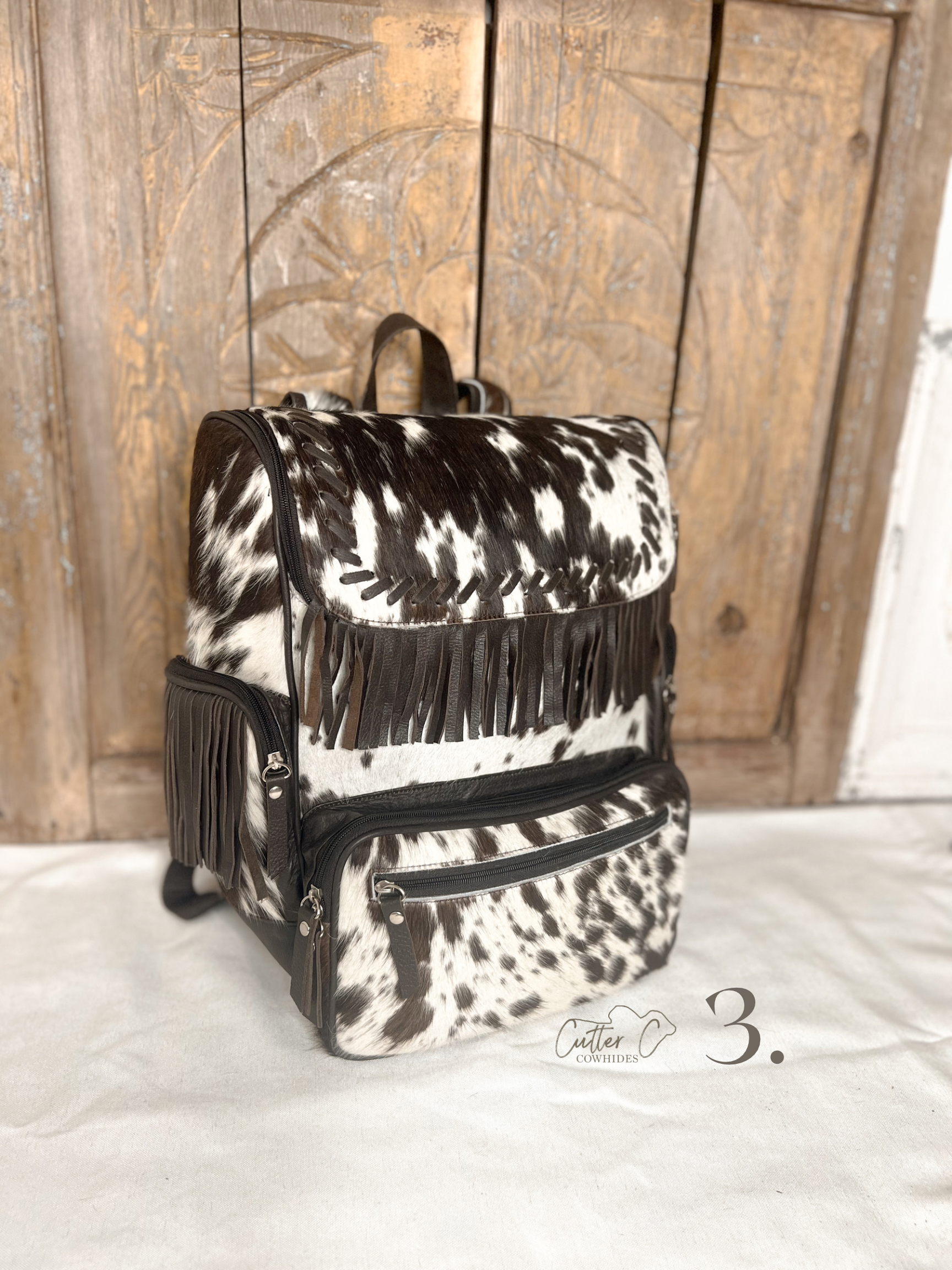 Inside is completely open with (3) elastic compartments on each side along with a larger zipper compartment at the back!