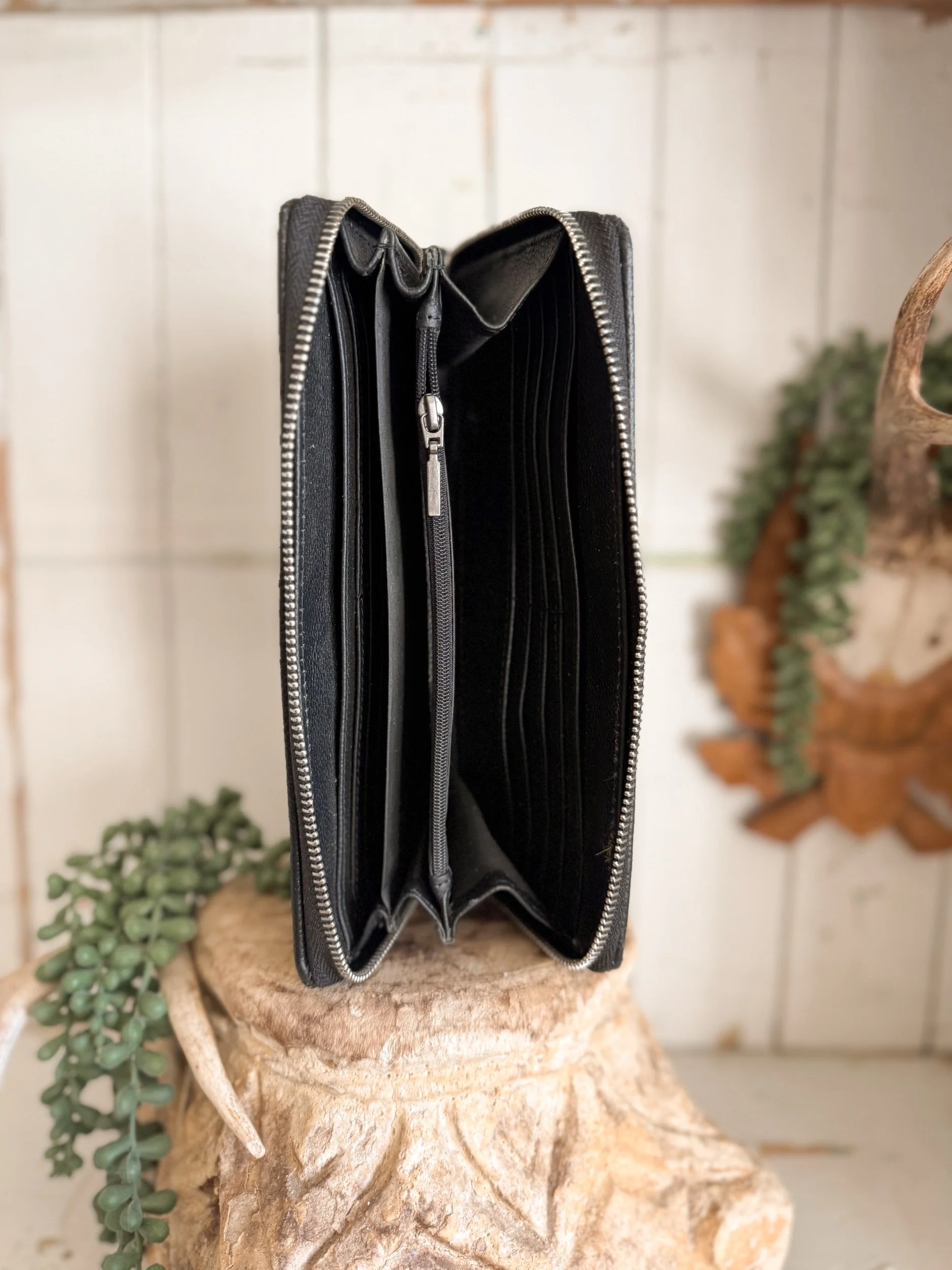 Inventory › Womens Cowhide Wallets Image 1 of 5 Image 2 of 5 Image 3 of 5 Image 4 of 5 Image 5 of 5 Womens Cowhide Wallets Sale Price: $40.00 Original Price: $60.00 9 x 5” Item: 1 2 3 Quantity: Add To Cart Added! 9 x 5”