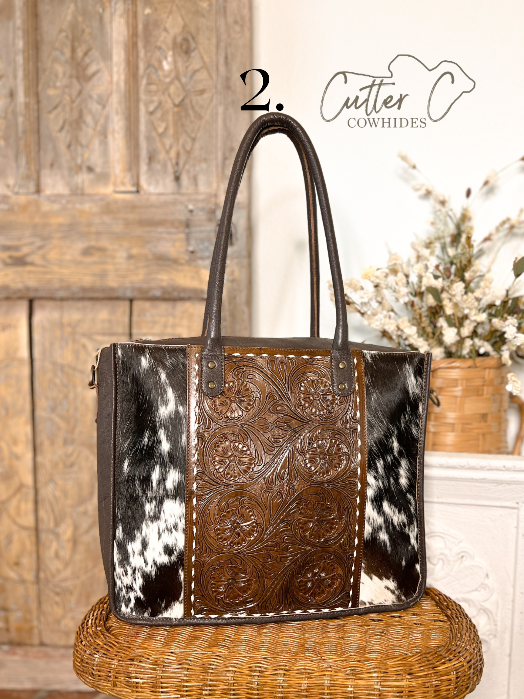 This large cowhide bag is the most versatile purse! Carry it as a tote purse, or add the removable crossbody shoulder strap and give it some length!